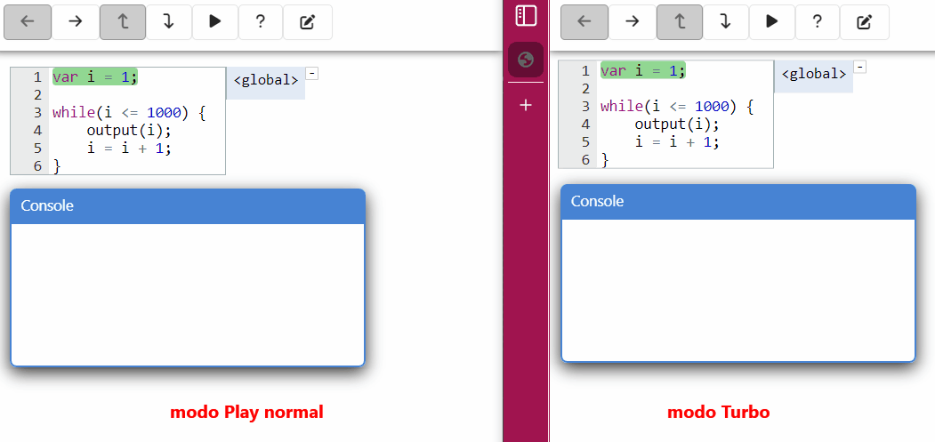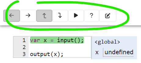 Use os botões para avançar ou retroceder a execução do código