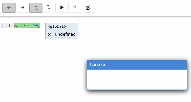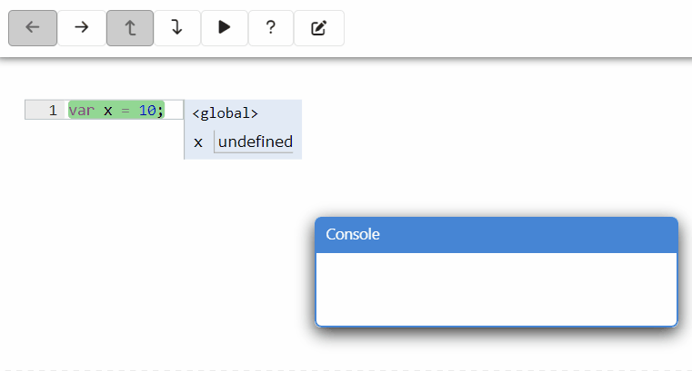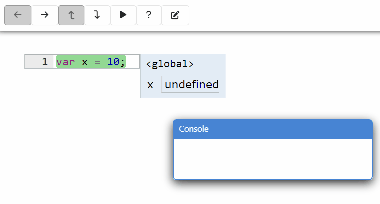 É um interpretador de código javascript, ou seja, você escreve código e clica em "Executar" para vê-lo executar passo a passo. É possível avançar e retroceder na simulação.