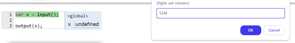 A janela de input permite fornecer um número para o programa calcular
