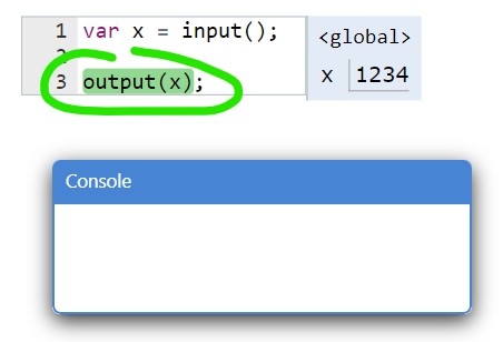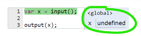 A linha com fundo verde é a próxima linha que o computador irá executar
